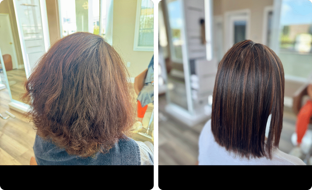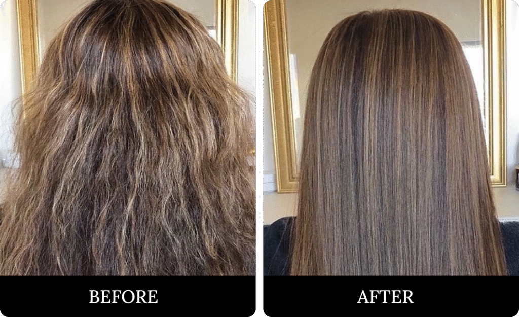 No. Unlike traditional straightening, this treatment keeps your hair’s natural body and bounce while removing frizz. You’ll have smooth, silky hair that still moves naturally.